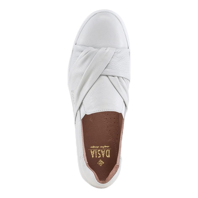 Starlily, nazouvací od Dasia v měkké bílé kůži. Ozdobné, překřížené stuhy na horní části, která s praktickou gumou na bocích umožňuje lehčí vstup. Vyjímatelná stélka je potažena kůží a má měkký materiál tlumící nárazy v podobě klínku cca 1 cm, který Vám poskytuje nejvyšší možný komfort. Podešev je o něco vyšší plató model v bílé gumě. Nazouvací model tenisek, který se hodí na každý den i na párty. Dasia je navržena obuv s ženskými vlivy, stylovými liniemi a vysokým komfortem.