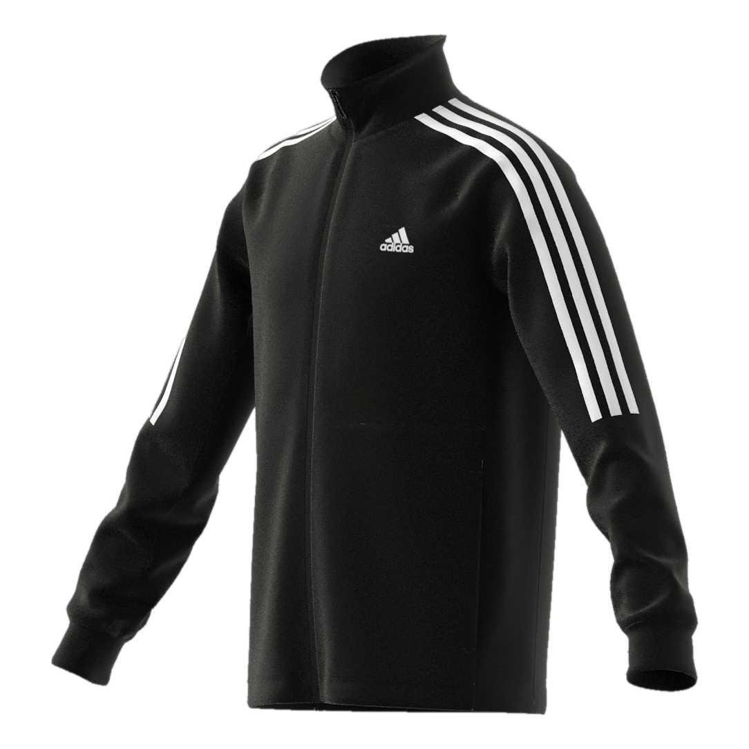 Slide on this juniors' track jacket for cool days on the pitch. Moisture-absorbing AEROREADY helps you stay dry as the game heats up. The full-zip front makes it quick to add or drop a layer. This product is made with Primegreen, a series of high-performance recycled materials.