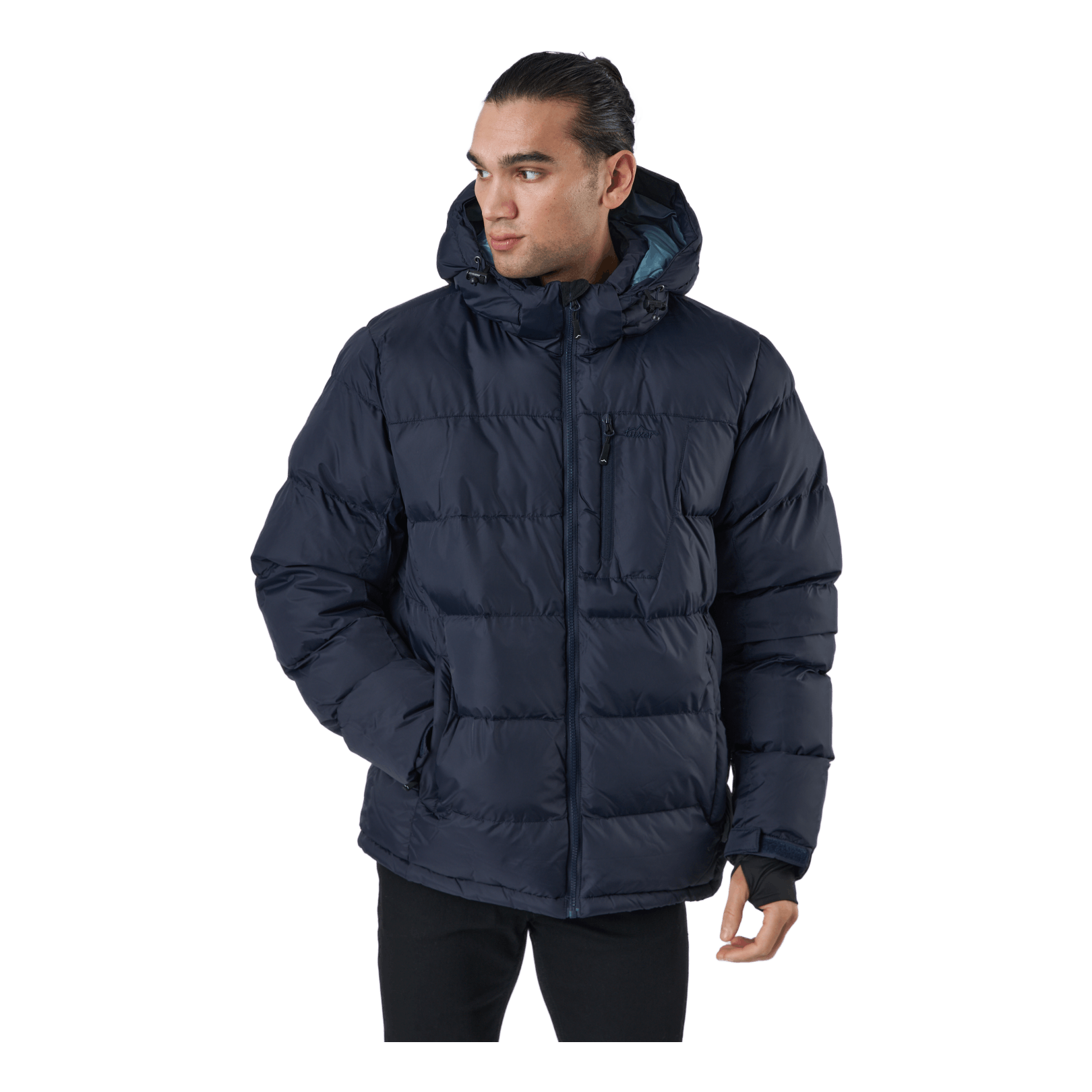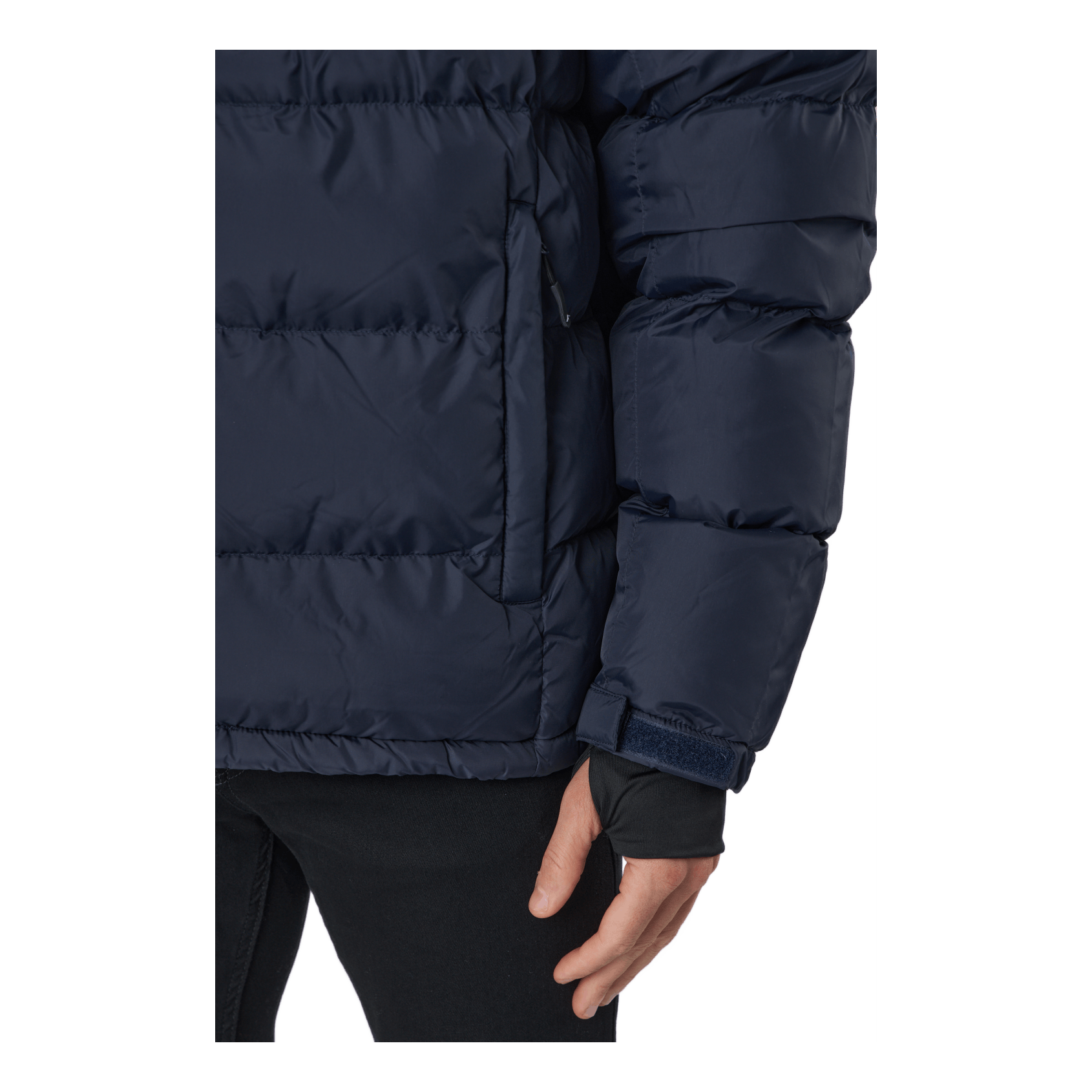 A light but warm jacket with several technical solutions. The fabric is water repellent and the imitation down filling keeps your body warm during the winter. The garment has a detachable hood as well as adjustable cuffs. The jacket is equipped with two big zippered pockets at the waist and a zippered chest pocket so you can bring all your important gadgets on your long days outdoors.