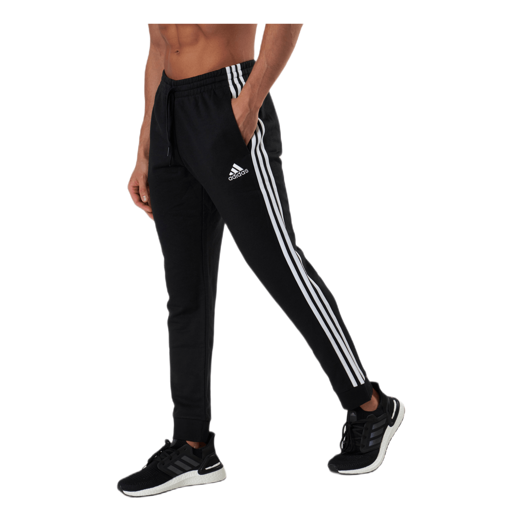 Essentials Tapered Cuff 3 Stripes Pants Black / White