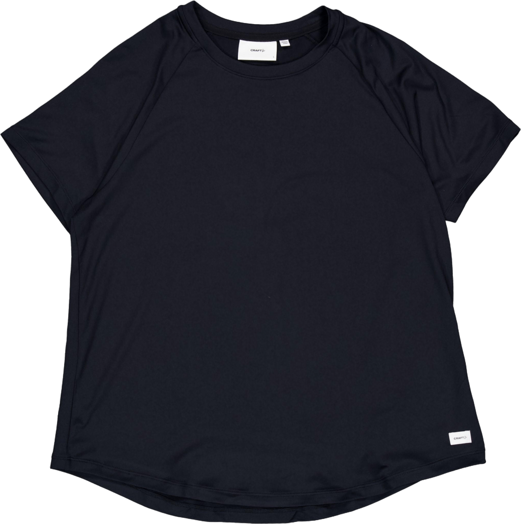 This versatile piece is crafted from a high-stretch polyester fabric with a fine-brushed, velvet-soft finish, providing a luxurious feel against the skin. The tee features raglan sleeves for optimal movement and a rounded bottom hem for a flattering, feminine silhouette. With its timeless design, this comfortable garment is the perfect choice for both casual daily wear and intense sessions at the gym.