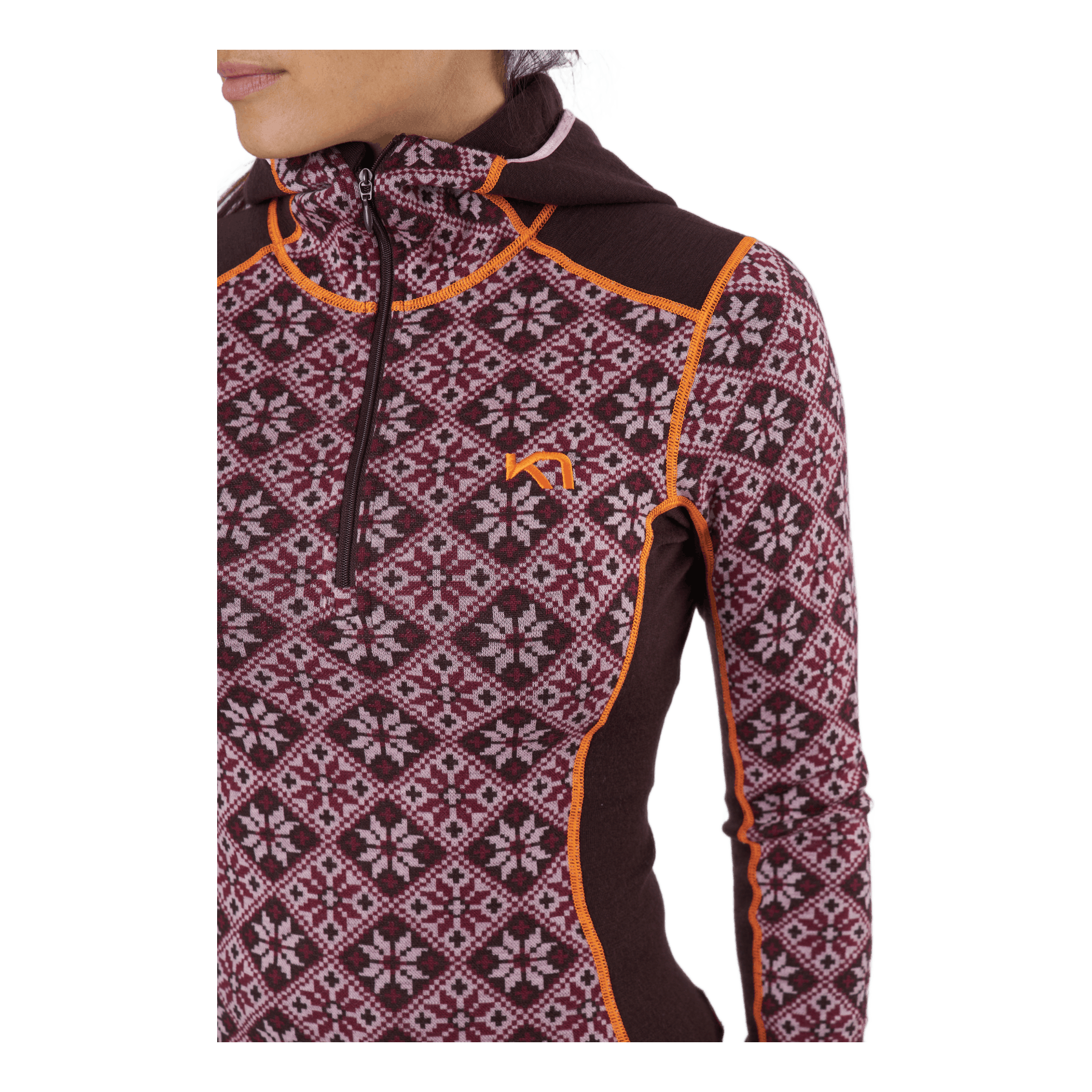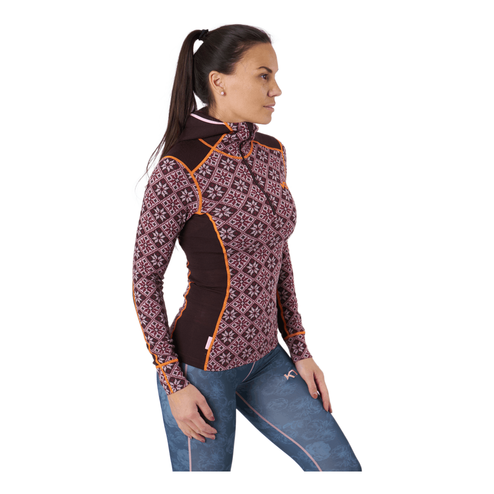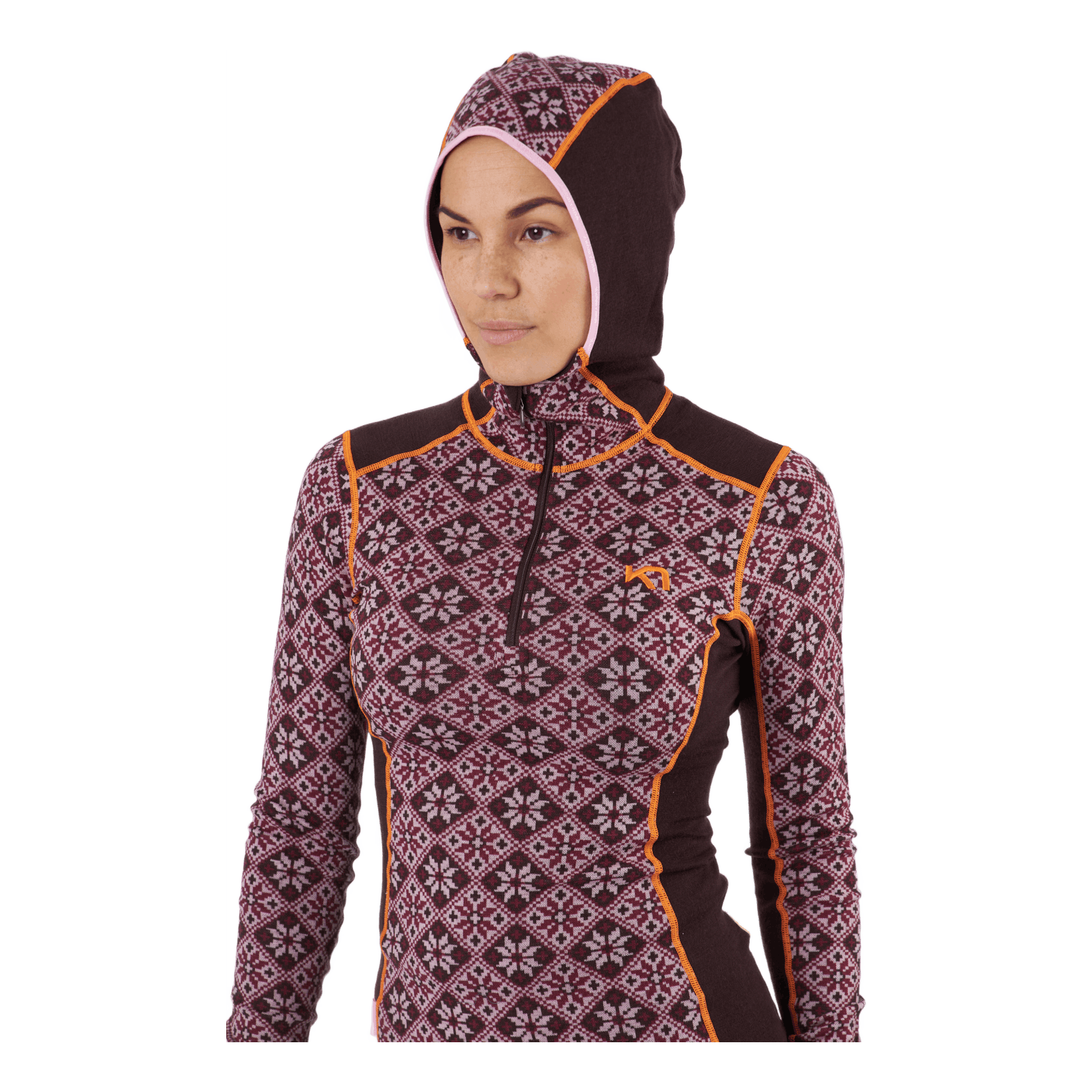 "The Kari Traa Rose Hood is a 100% Merino wool half-zip women’s baselayer top with a classy, feminine, Nordic-inspired design and a slim, sporty silhouette. Combining wool and 4-way stretch, it gives you ooh-factor next-to-skin comfort, natural odor-resistance and breathability. Feeling the cold after storming a peak? Then flip up the slim hood – it will fit under other layers. A must-have."