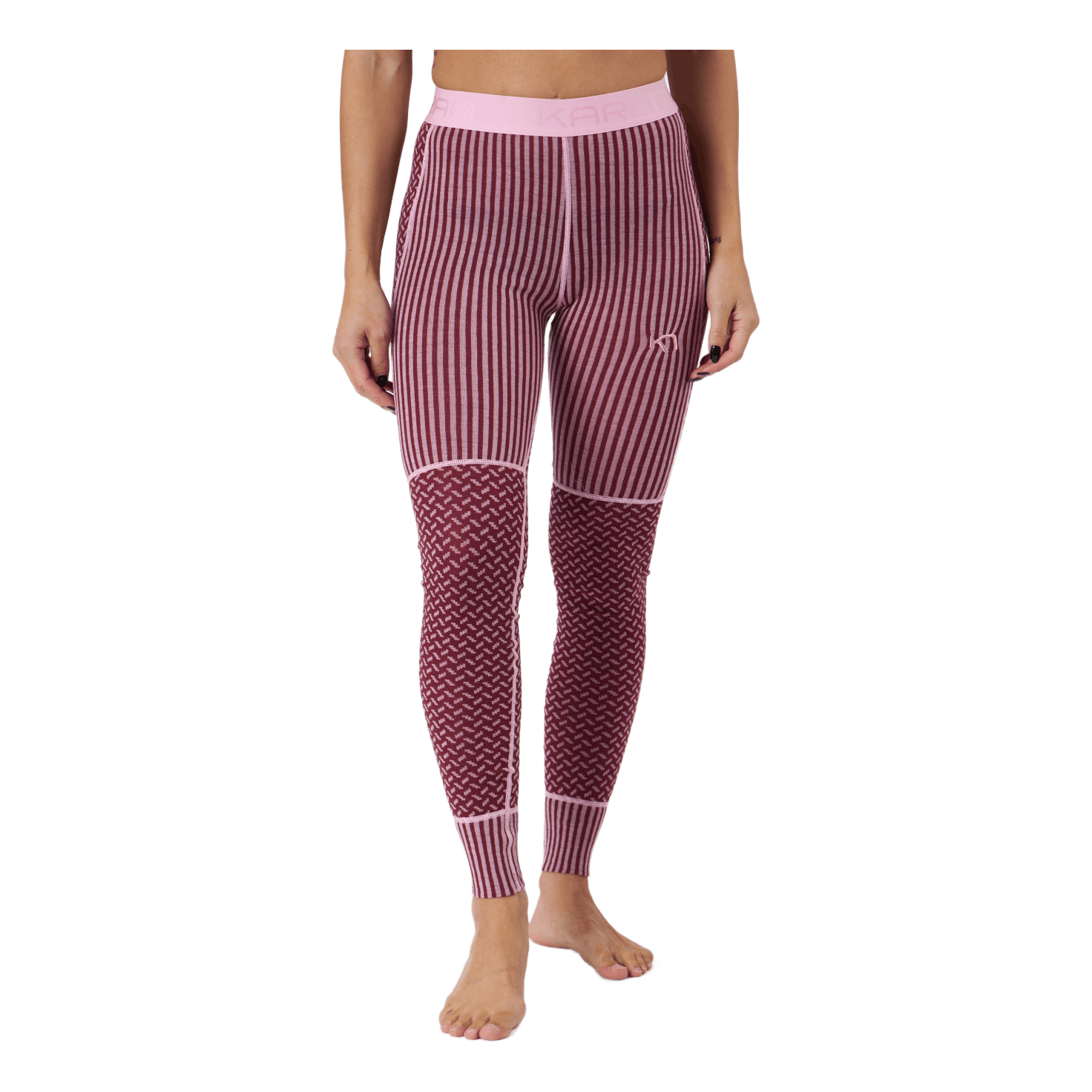 "The Kari Traa Smekker Pant is a pair of lightweight women’s baselayer leggings in 100% Merino wool. Naturally breathable and odor-resistant, wool keeps you warm whether it’s wet or dry and feels great against your skin. Flatlock seams cut out chafing when the intensity rises. Panels of Jacquard-knit patterns in different intensities give it a great look, while the waistband provides a nice contrast detail."