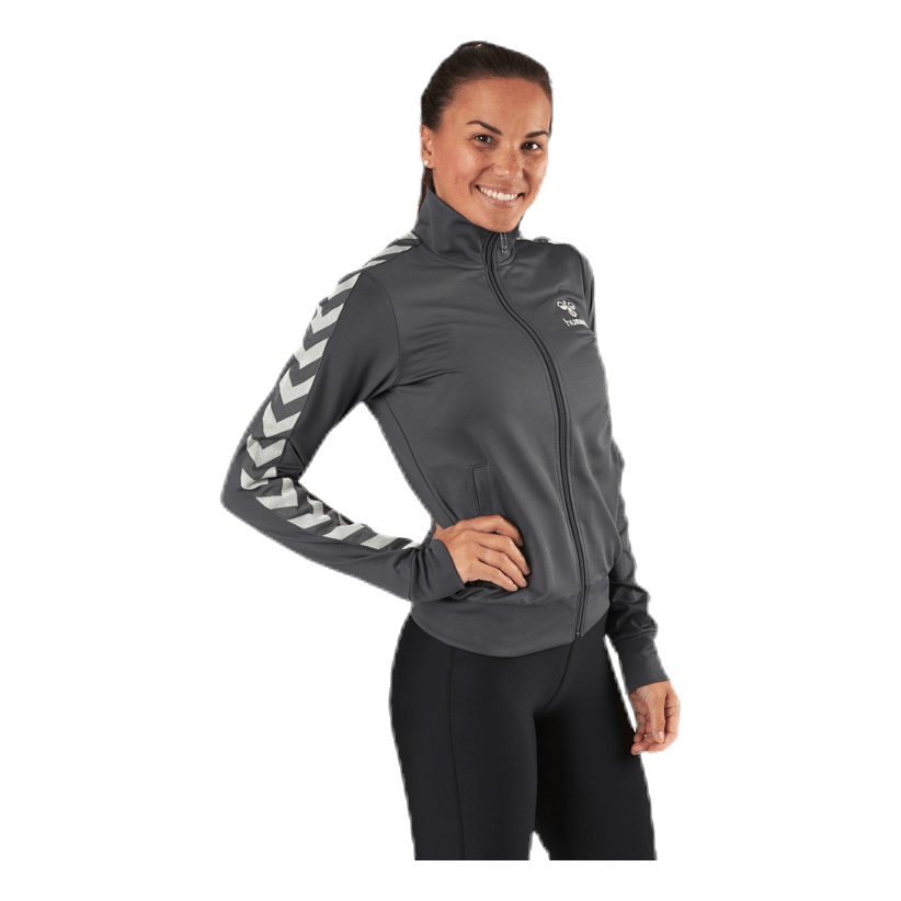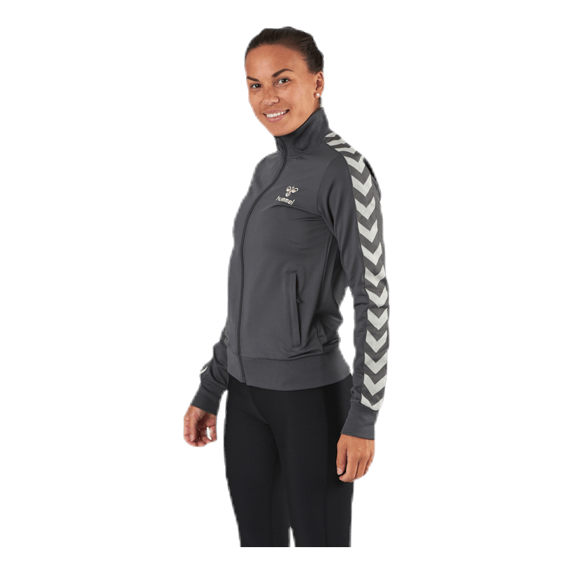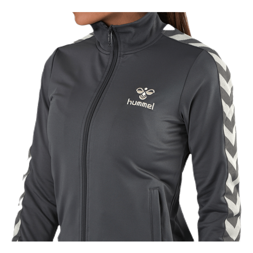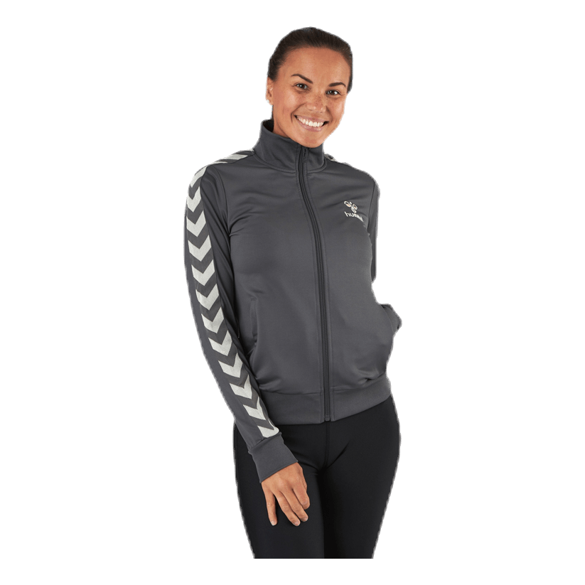 Un tracktop clásico en estilo retro de hummel. Bolsillos con cremallera y el ajuste es normal. 95% poliéster y 5% elastano.