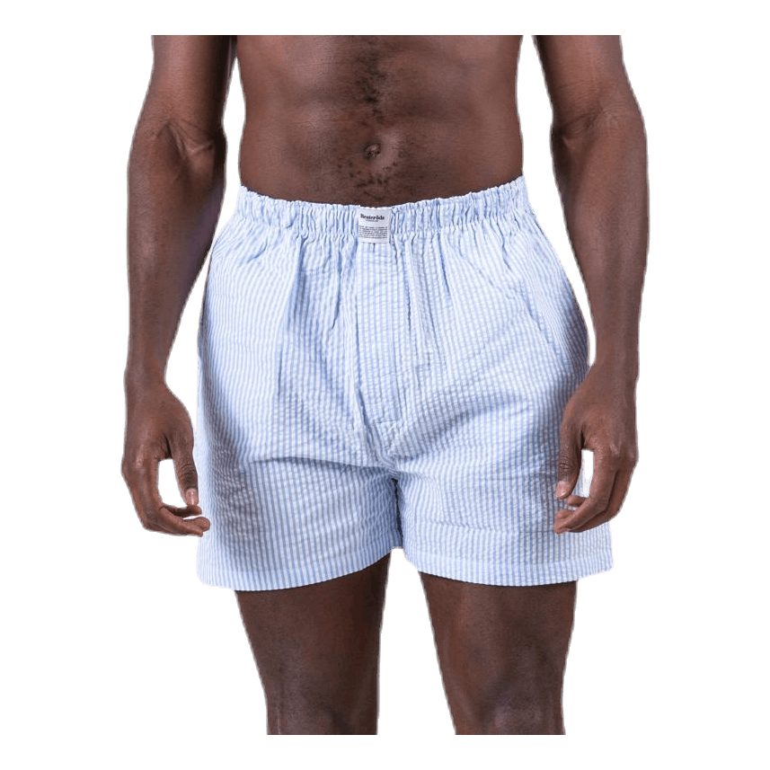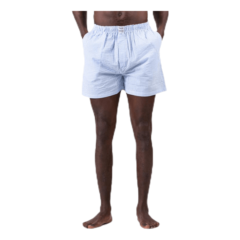 Short de pyjama avec deux poches latérales et patch logo Resteröds. Fabriqué dans une fantastique qualité de seersucker 100% coton.