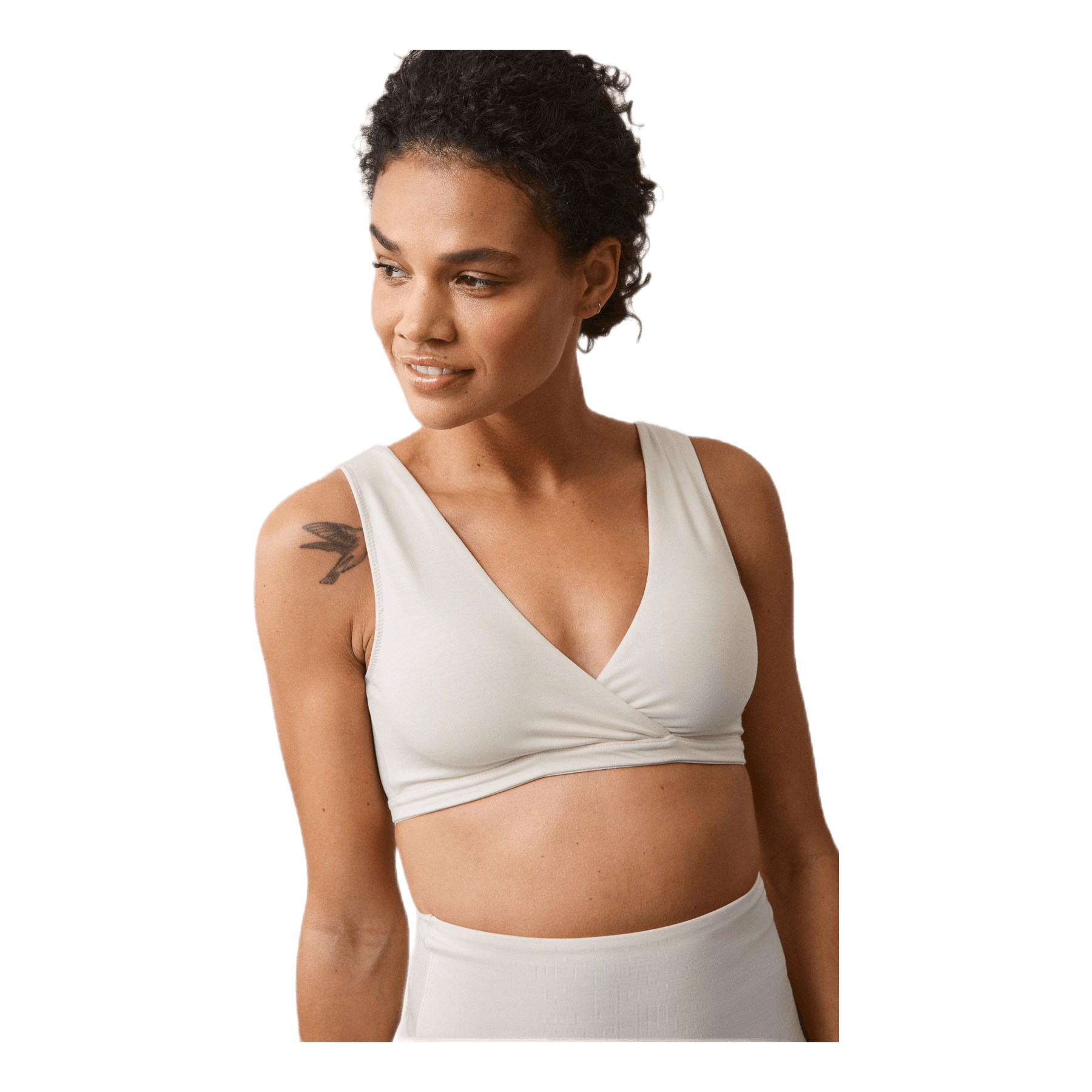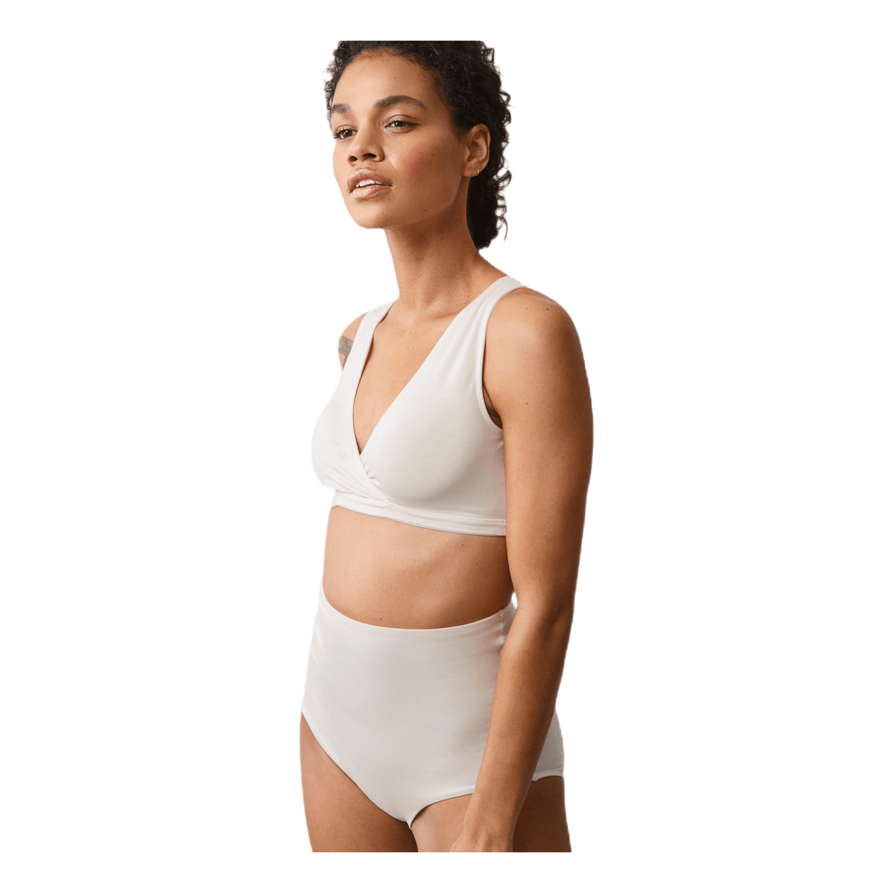 Soutien-gorge enveloppant qui s'adapte avec souplesse à la taille de la poitrine et s'adapte parfaitement tout au long de la grossesse, de l'allaitement et après. Fabriqué en lyocell doux et confortable qui évacue l'humidité - parfait même pour la nuit grâce au modèle enveloppant - où les poches se replient facilement pendant l'allaitement. Composé à 94% de lyocell et 6% d'élasthanne. Degré de soutien: soutien moyen. Certifié selon la NORME 100 par OEKO-TEX®.