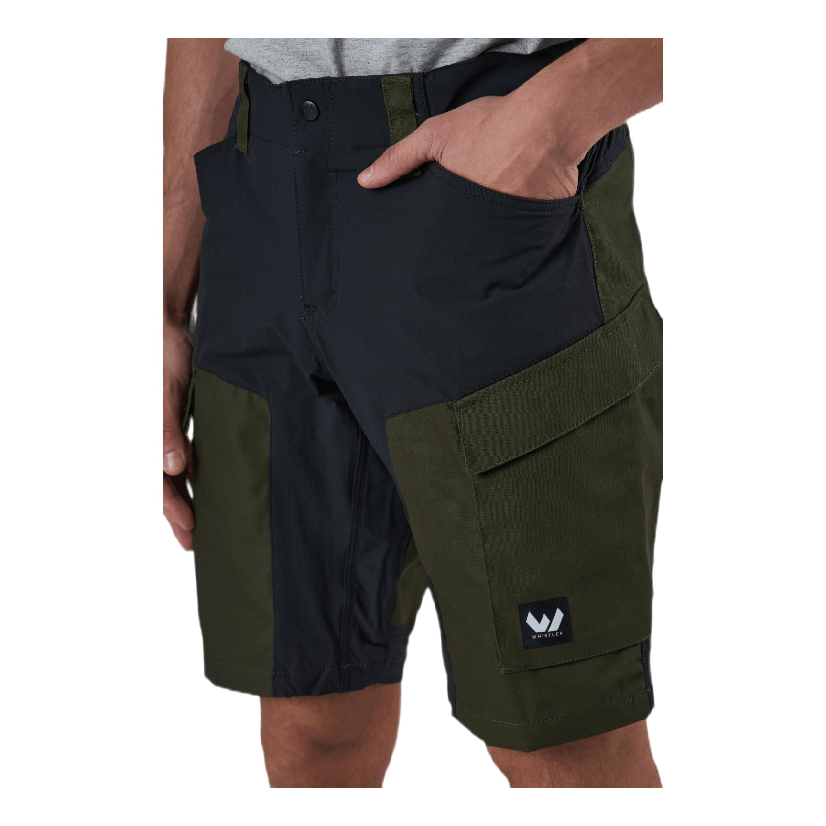 Whistler göngustuttbuxur eru með frábæra eiginleika sem gera þær góð kaup. Efnið er nælon/spandex blanda, sem gerir þessar stuttbuxur mjög þægilegar á meðan þær veita mýkt og öndun. Mittið er stækkanlegt til að tryggja þægilega passa og vasarnir eru bæði djúpir og nógir til að geyma nauðsynjar þínar. Þessar cargo stuttbuxur eru með hliðarrennilás með hnappalokun til að bjóða upp á hámarksöryggi og auðvelda leið