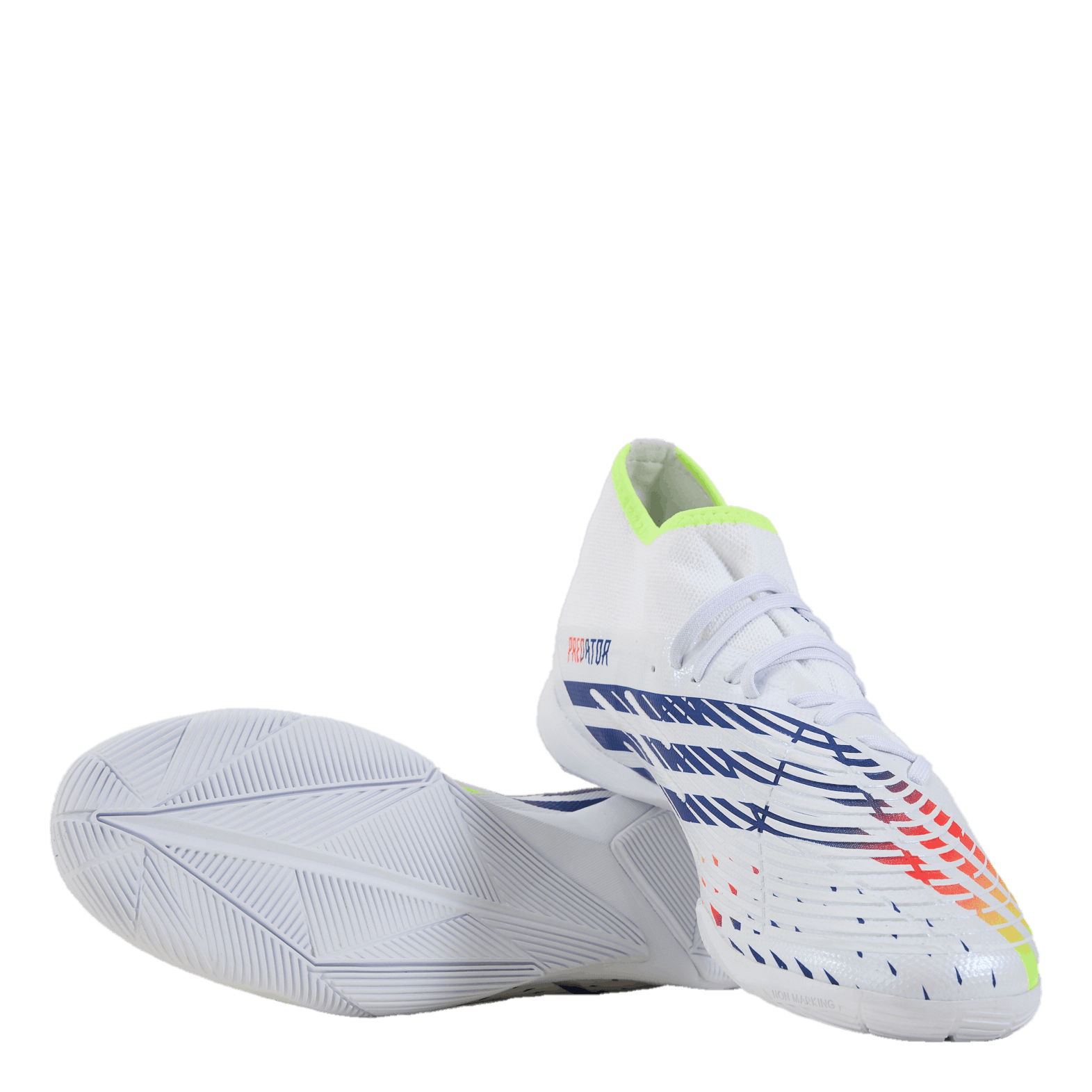 Controlla ogni calcio negli stivali adidas realizzati in parte con contenuto riciclato. Devia normale per trovare il tuo vantaggio. Introduci un lato nuovo di zecca al tuo gioco con queste scarpe da calcio indoor adidas Predator. Distribuita sulla tomaia in morbido tessuto rivestito, la stampa aderente Control Zone ti assiste con ogni tocco di palla. La combinazione di colletto adattivo e suola in gomma antitraccia ti mantiene stabile e in carica su campi indoor e pianeggianti.
