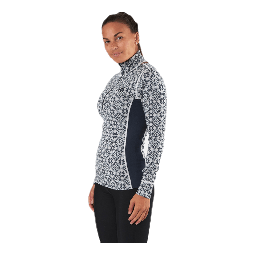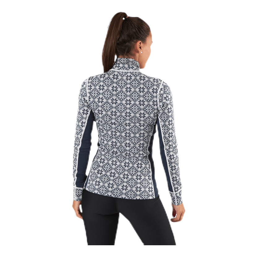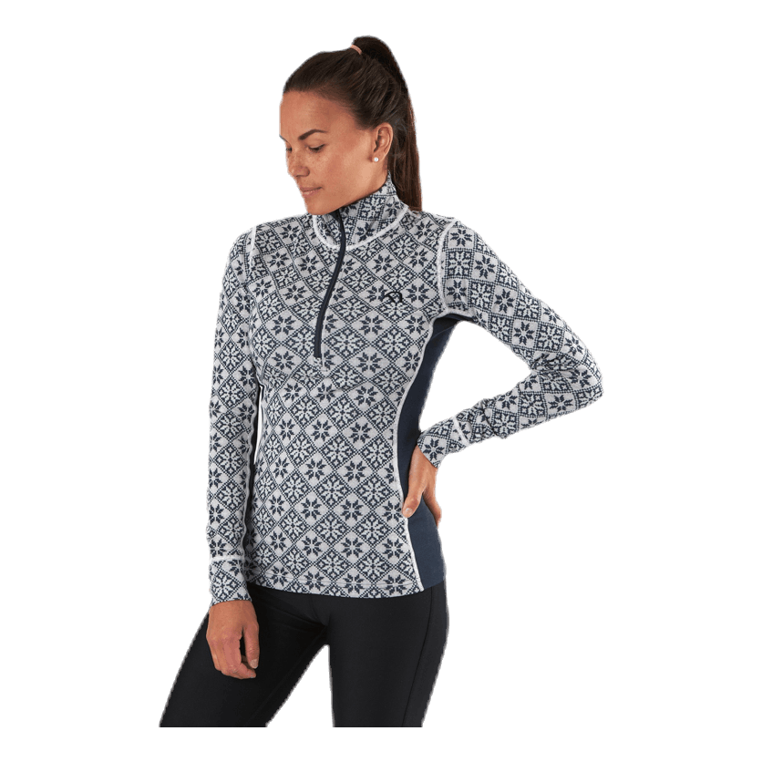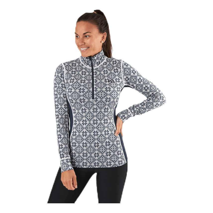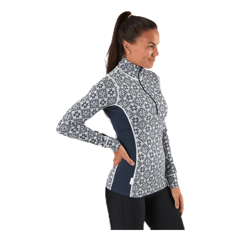 „Kari Traa Rose Half-Zip to damska warstwa bazowa wykonana w 100% z wełny merynosów, z eleganckim, kobiecym, inspirowanym nordyckim kwiatowym wzorem i smukłą, sportową sylwetką. Łącząc wełnę i 4-kierunkowy stretch, zapewnia efekt ooh - komfort dla skóry, naturalna odporność na zapachy i oddychalność. Czujesz ciepło po tym, jak dajesz z siebie wszystko? Następnie zapnij wysoki kołnierz, aby przewietrzyć. Niezbędny."