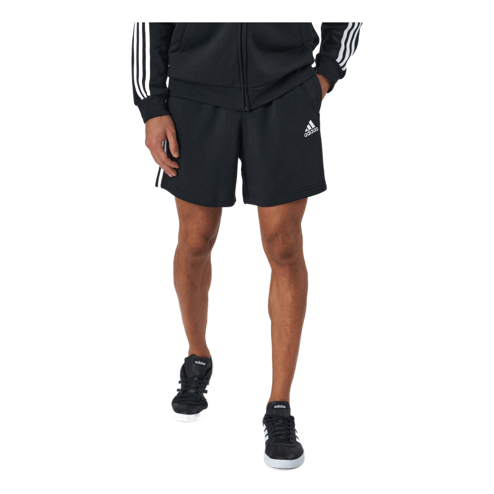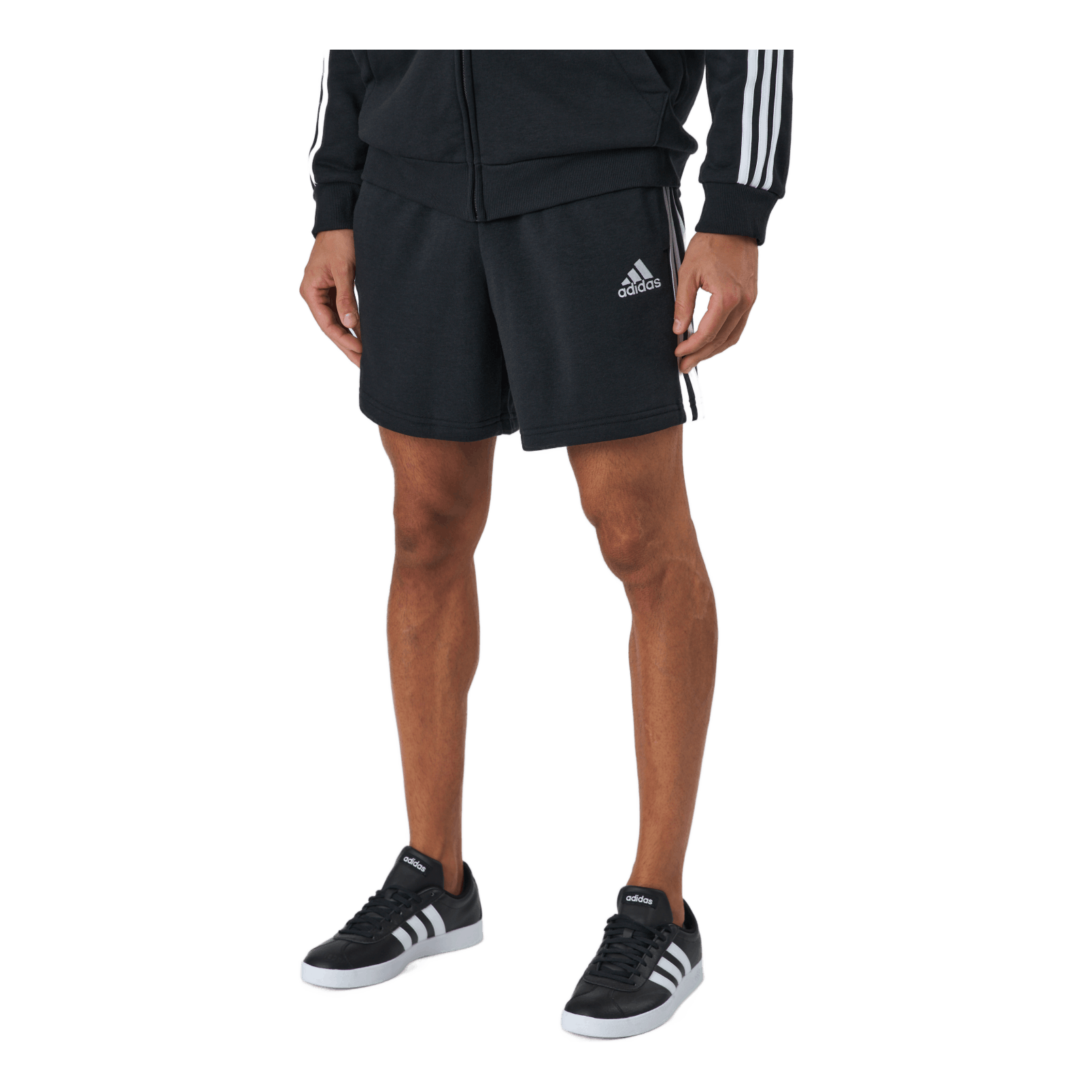 Klasyczne szorty z 3 paskami z materiału frotté.Wygoda na co dzień. Te szorty adidas mają autentyczny look dzięki 3 paskom na nogawkach. Elastyczna talia regulowana sznurkiem gwarantuje odpowiednie dopasowanie, a boczne kieszenie nadają całości niezobowiązujący, sportowy styl. Materiał frotté sprawia, że szorty są miękkie i miłe w dotyku.