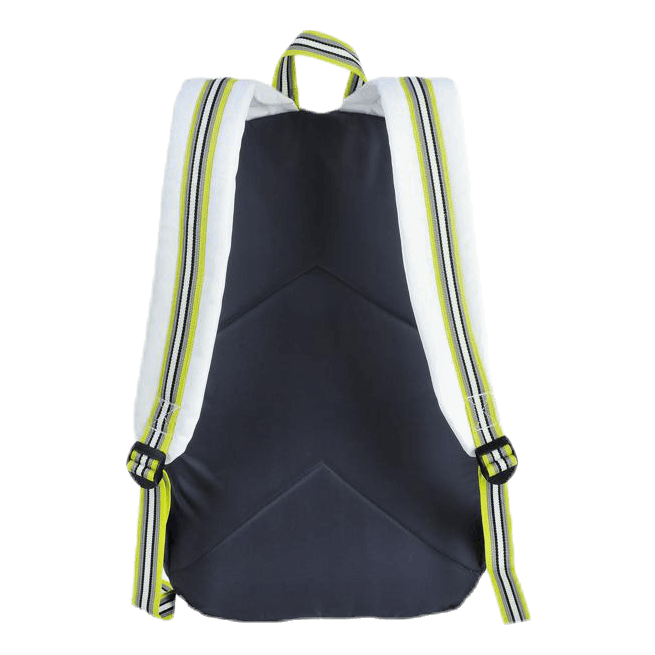 Ryggsäck med två stor fack ett fram och ett bak. Ryggen är vadderad så det barke facket är perfekt för tex een dator. I det främre facket finns en nätficka med dragkedja. På sidorna finms två öppna fack samt en ficka frampå som försluts med kardborreband. Vadderade och justerbara axelband.
