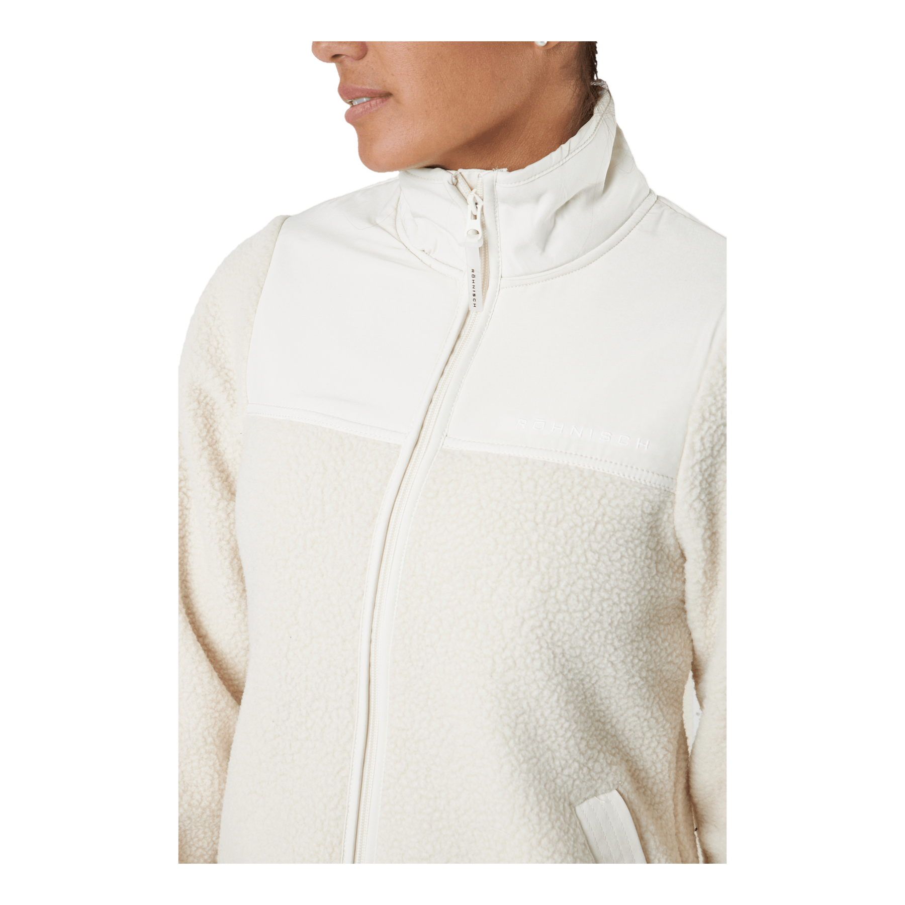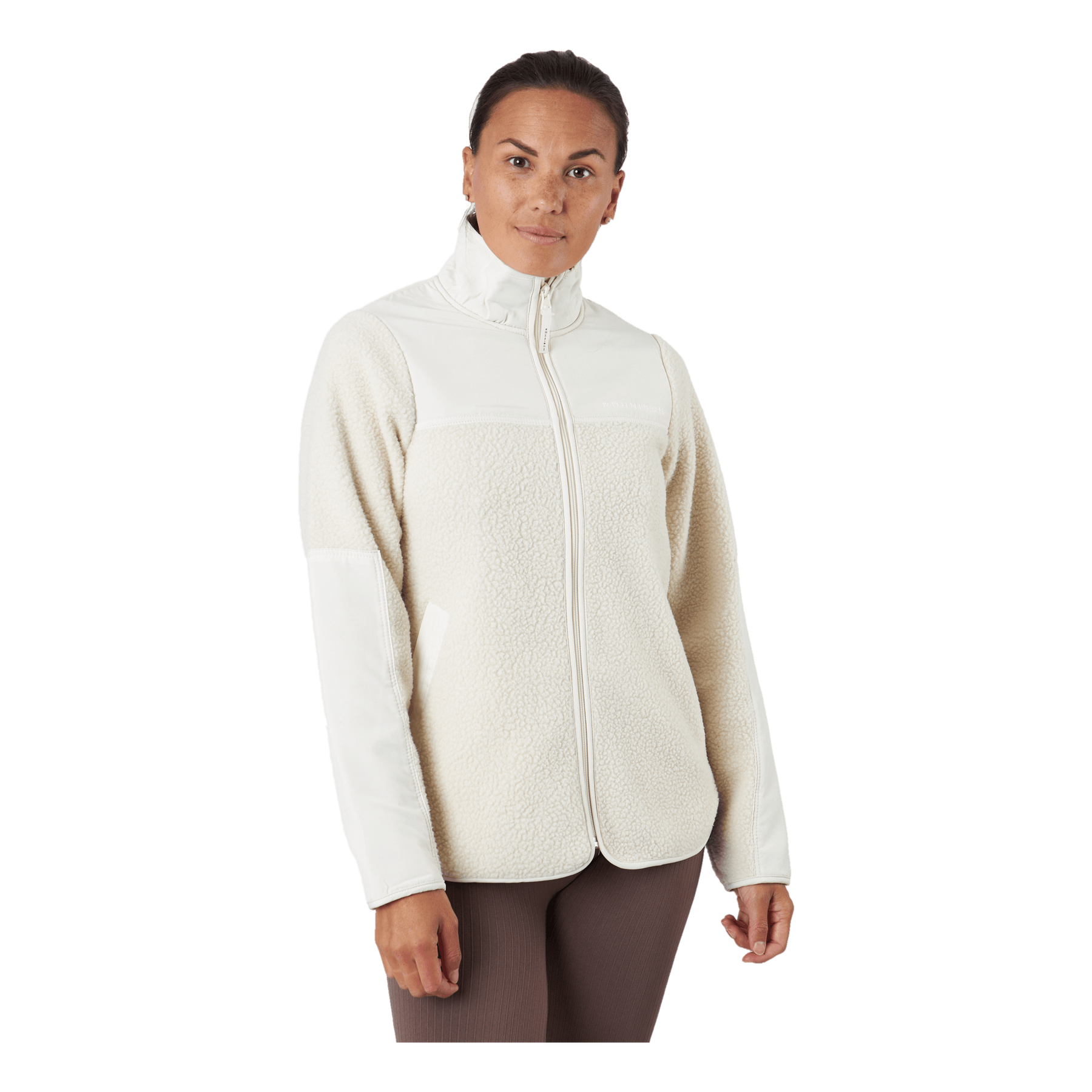 Phoebe Pile Jacket , bunda z hrejivého vlasového materiálu z recyklovaného polyesteru. Má vetruodolné panely, vysoký golier a celoprepínací zips vpredu s dvomi prednými vreckami. Táto hrejivá bunda má pohodlný, voľný strih so zníženým zadným lemom. Všetko zdobené potlačou loga Röhnisch vpredu. Phoebe je ideálna na dlhé prechádzky vonku, na ceste do a z telocvične, ale aj do vášho každodenného šatníka vďaka svojmu minimalistickému dizajnu a trendovej vlasovej látke.