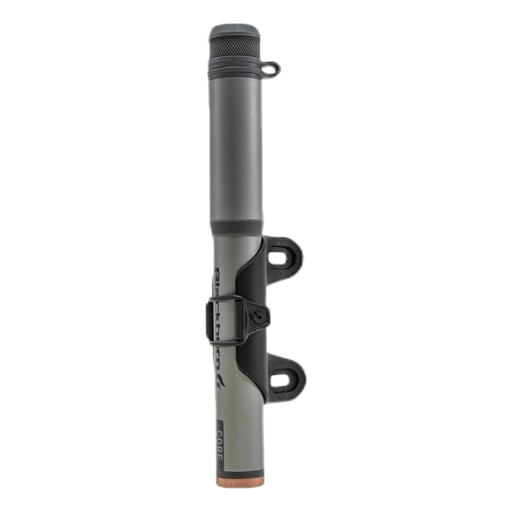 Učinkovita črpalka z tanko zasnovo. Šoba črpalke, ki se samodejno prilagaja ventilom Presta. Nosilec okvirja vključen. Tlak 120 PSI, 8,2 Bar maks. tlak Teža 102 g